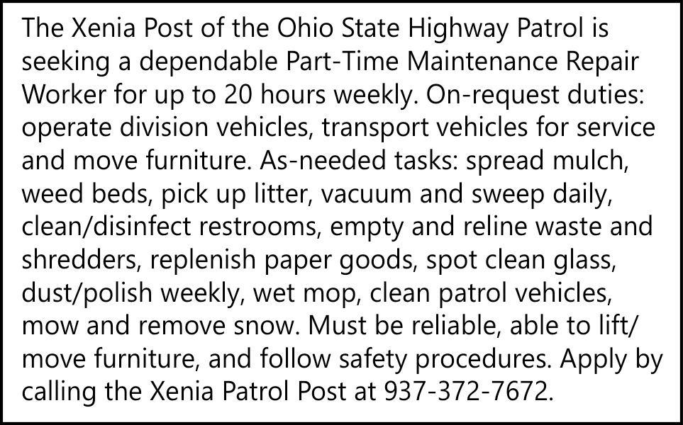 Oct 10, 2025. Xenia Patrol Post Jobs Ads from Xenia Daily Gazette