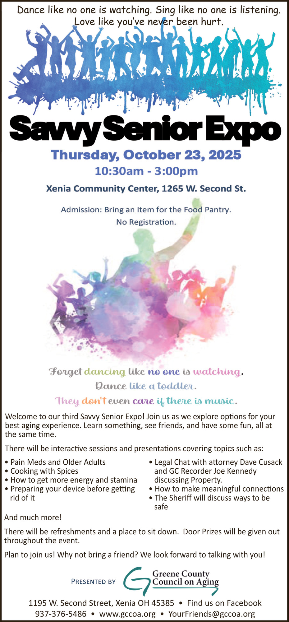 Oct 14, 2025. Savvy Senior Expo (October 23, 2025) Events Ads from Xenia Daily Gazette