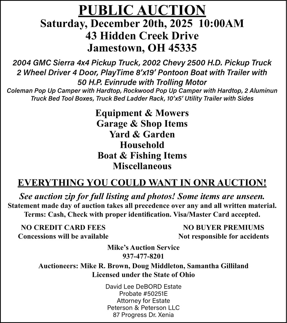 Dec 05, 2025. Mike's Auction Service Auctions Ads from Xenia Daily Gazette