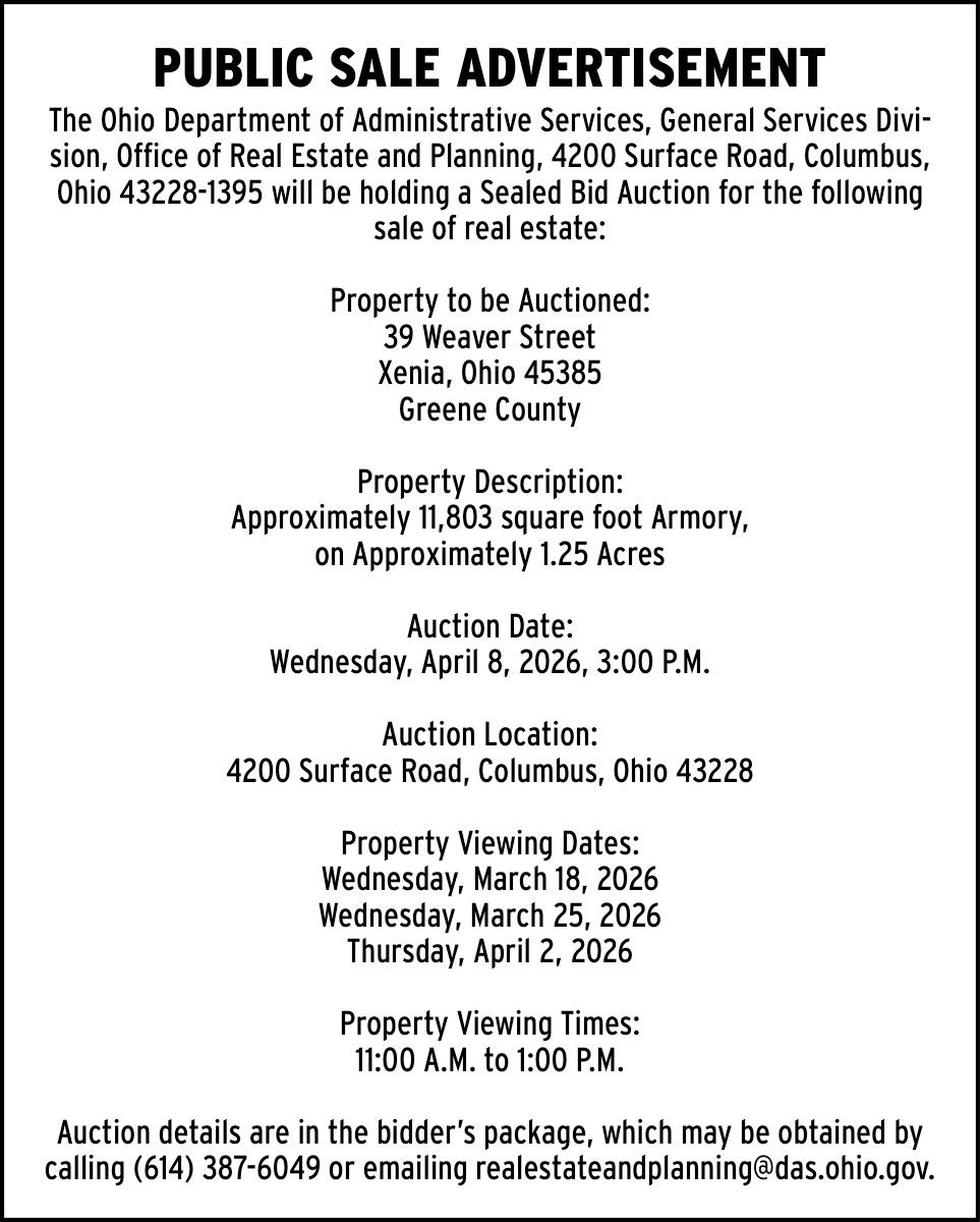 Mar 13, 2026. Ohio Department of Administrative Services Public Notice Ads from Xenia Daily Gazette