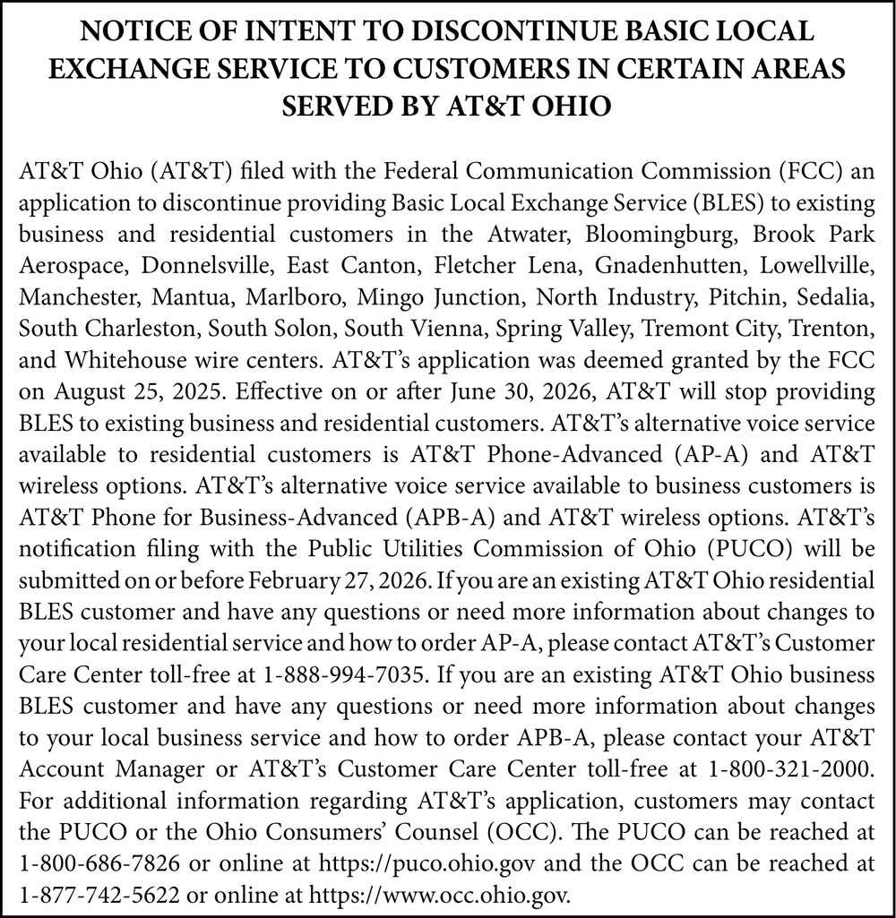 Feb 27, 2026. AT&T Public Notice Ads from Xenia Daily Gazette